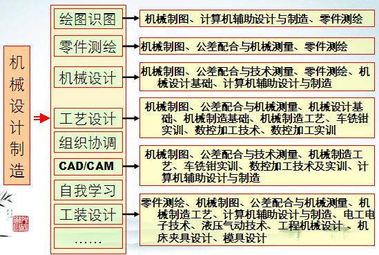 主要课程与岗位能力】机械制图、机械设计基础、公差配合与技术测量、电工电子技术、金属切削原理与刀具、机械制造工艺学、机床夹具设计、金属切削机床、机床电气控制与PLC、数控编程与加工技术、机械CAD/CAM、金工实习、数控加工实习、机械制造生产实习和顶岗实习等。