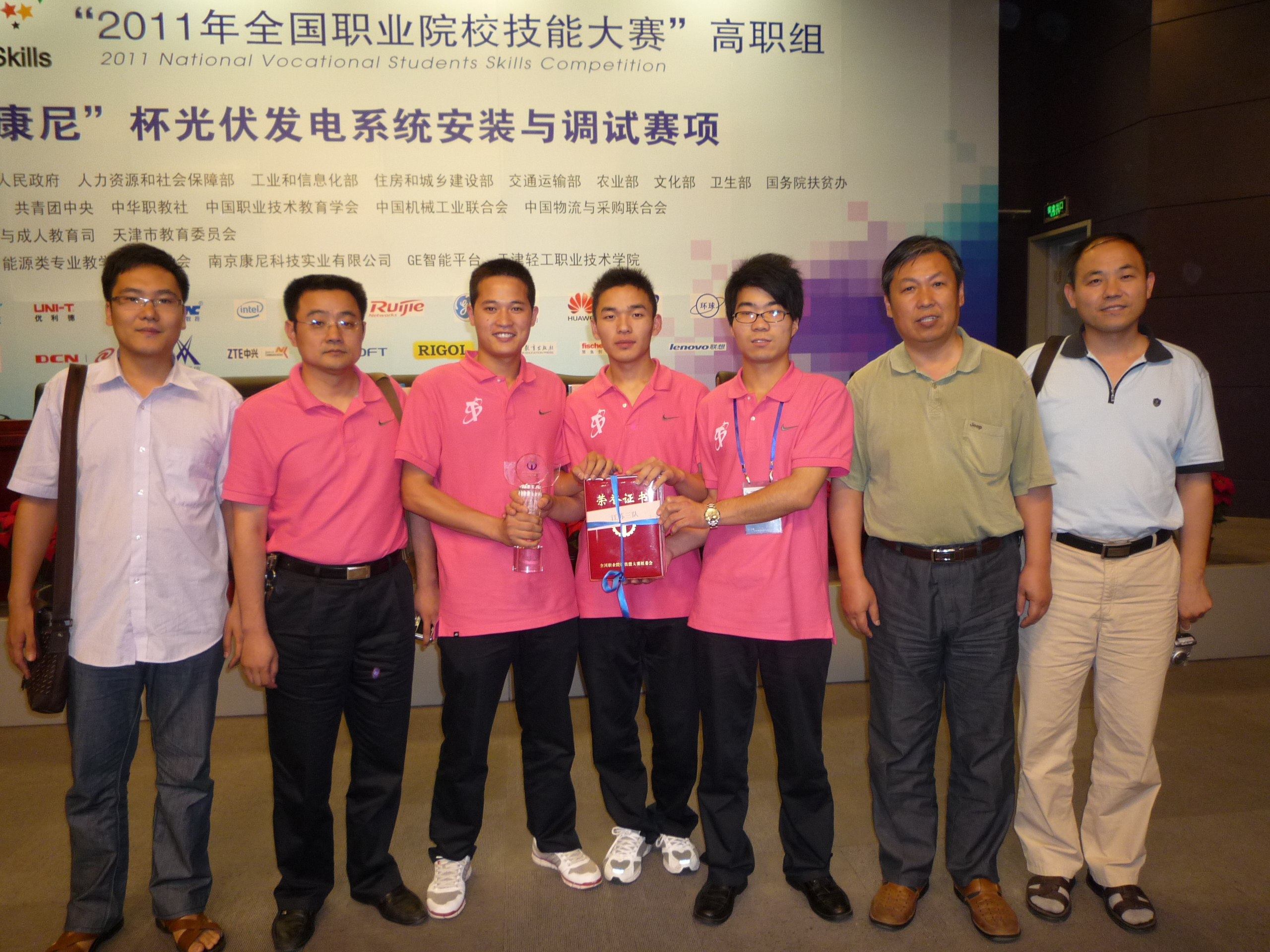 2011年6月在天津举办了由教育部职业教育与成人教育司主办的2011年全国职业院校技能大赛高职组“康尼”杯光伏发电系统安装与调试大赛,本次大赛有全国29个省、市、自治区组成52个代表队参赛,公司代表队由机电公司6名师生组成,经过了6个小时的拼搏,最终获得大赛三等奖,为江苏省及公司取得了荣誉。近日,江苏省教育厅授予公司2011年江苏省职业院校技能大赛先进单位荣誉称号。
