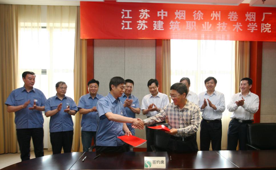 沈士德副经理和江苏中烟工业有限责任公司徐州卷烟厂纪委书记曹爱峰在合作协议上签字,公司有关职能部门和机电工程公司领导以及烟厂领导班子成员及相关负责人参加了签约仪式。