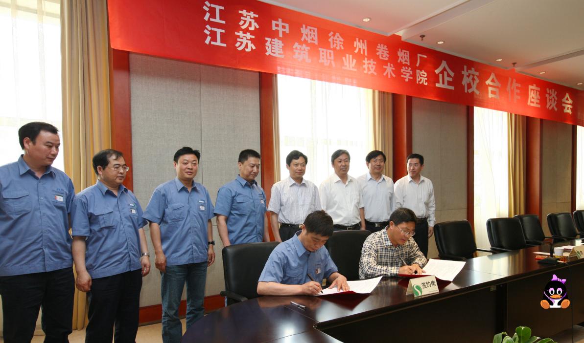 2013年5月15日上午,吴光林经理、沈士德副经理带领校企合作办、机电公司一行6人前往江苏中烟工业有限责任公司徐州卷烟厂参观考察,并与烟厂签订了校企合作协议。