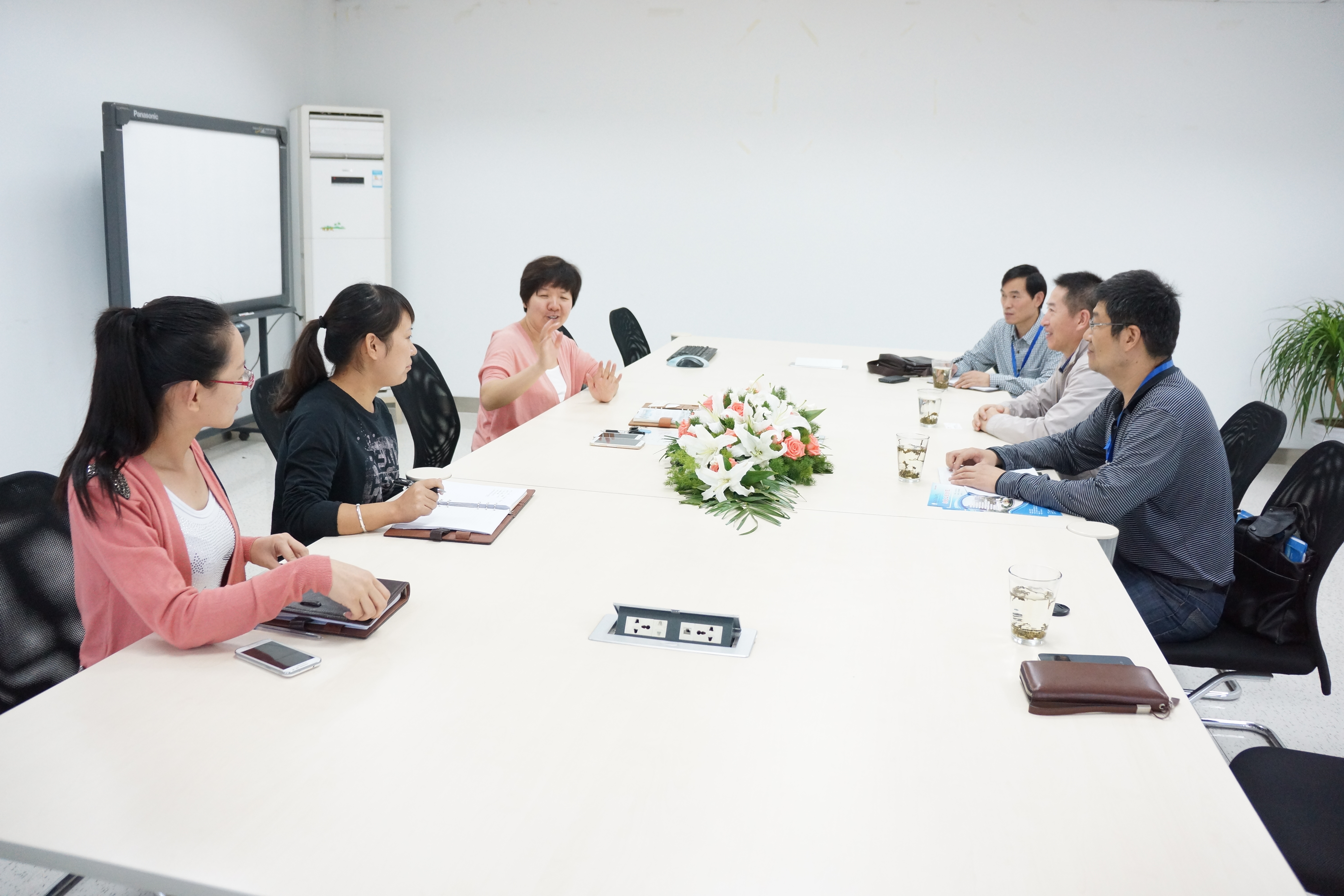 潘峰一行受到江苏云意电气股份有限公司董事长付红玲的热情接待。付红玲董事长代表江苏云意电气股份有限公司对潘峰一行的到来表示热烈欢迎,并就江苏云意电气股份有限公司的现状、人才状态、科研等有关情况做了详细介绍。接着潘峰书记就机电工程公司的专业设置、办学规模、办学特色、硬件条件、团队力量等方面向付红玲董事长作了介绍。双方在初步了解了对方情况后,在人才需求、合作办学、科研合作等方面作了深入的探讨和交流。付红玲董事长决定在近期将派企业人力资源部门负责人到机电公司实地考察,并进一步商讨合作事宜。