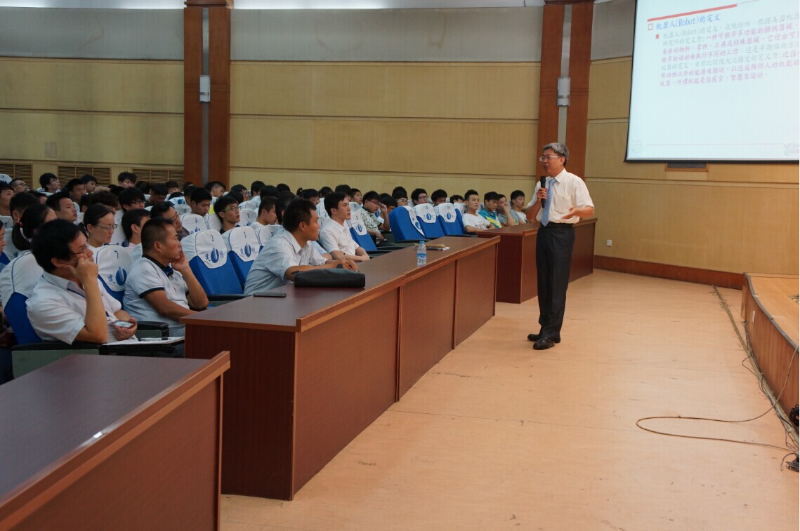 在下午的《机器人发展历程》的学术报告中,蔡教授结合大量图片信息,将全球机器人发展历程、台湾机器人发展历程、建国科技大学机器人发展历程等内容向机电公司老师及同学全面展示。蔡教授讲得风趣幽默、深入浅出,机电公司师生听得入神。报告会现场气氛热烈而融洽。