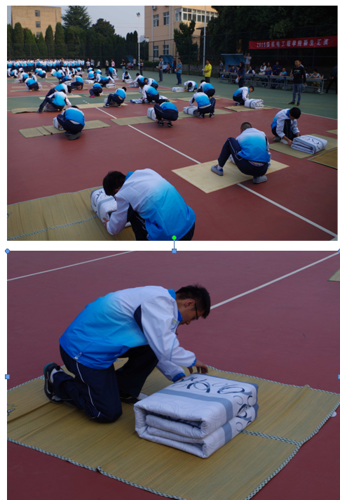 此次比赛每个班级派出4名同学代表班级参赛,共计44名同学同时比赛。比赛当天尽管烈日当空,但我们的新生们依然能够全身心地投入比赛中。比赛过程中班上同学自发地拉起了歌,为参赛同学加油助威。随着一声“开始”的口令发出,同学们就立马进入状态,迅速蹲下,熟练的叠起被子,在仅有的2分钟的比赛时间里,每位同学都将自己的被子叠成了“豆腐块”。在激烈的比赛现场,选手们个个叠法熟练,精神集中,尽情挥洒着汗水,充分展示了机电公司新生的青春风貌。