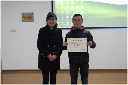 经过1个小时的激烈角逐,大赛的比分已经统计出来。电子16-1班韩笑同学获得此次比赛的一等奖。机电16-1唐晟哲、机电16-3徐晶晶获得二等奖,机设16-1姜靖峰、机设16-2鹿家驹、电气16-2王宇获得三等奖。比赛在热烈的鼓掌声中圆满结束。