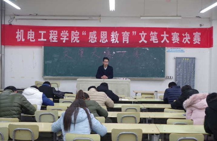 12月19日晚7:00,文笔大赛决赛在教三E座502举行。主题是“我要感谢……”,参赛选手们个个镇定从容,信心满怀。经过90分钟的奋斗他们都在空白的作文纸上点缀了最美丽的答卷。经过严格评比,机器人16-1宗圆获得一等奖、机控16-1张一帆获得二等奖、机电16-2孔浩宇获得三等奖。