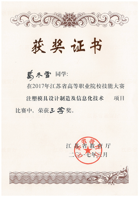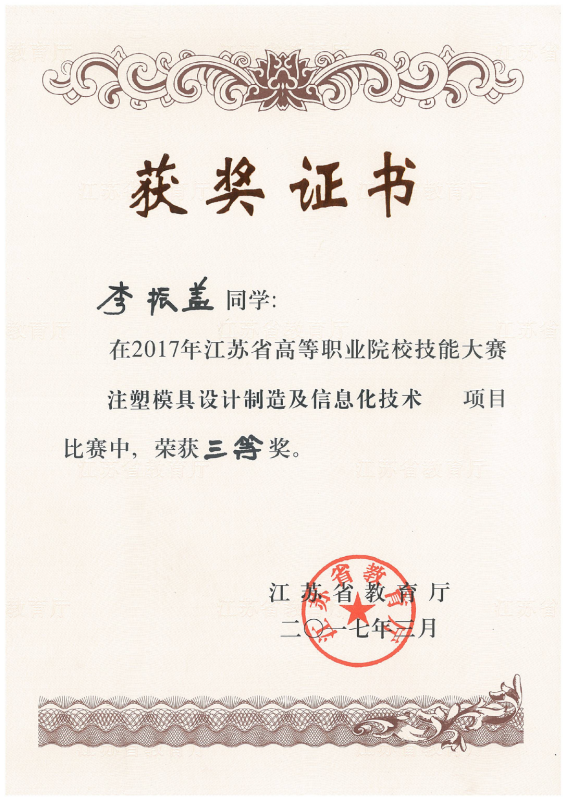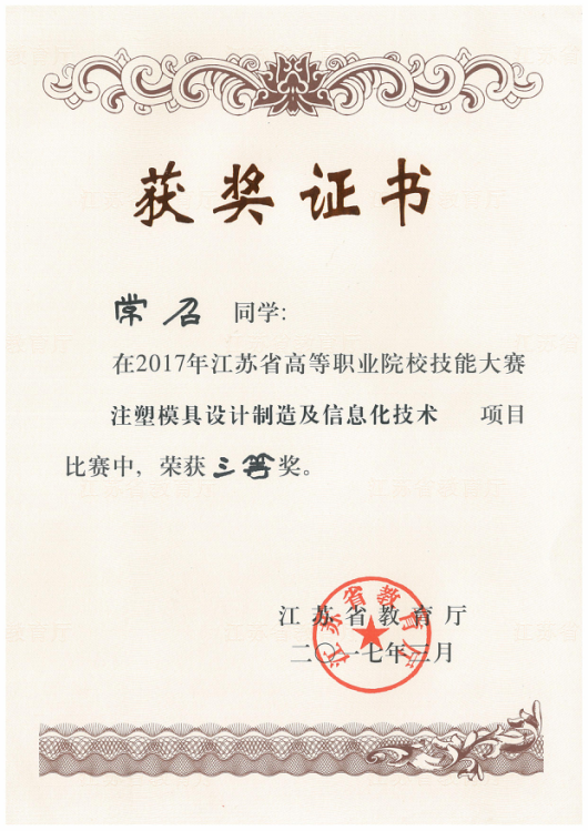 3月11日,2017年江苏省高等职业院校技能大赛“德立天杯”注塑模具设计制造及信息化技术赛项在江苏信息职业技术公司落下帷幕,机电工程公司首次组队参加此次模具大赛。经过紧张激烈的角逐,最终公司喜获三等奖。