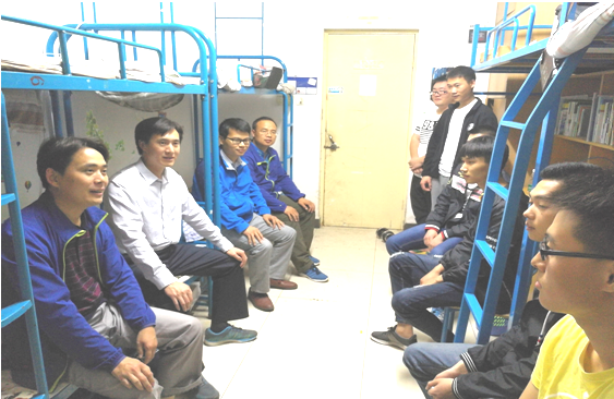 在2017届的毕业答辩临近尾声之际,为了做好毕业生离校工作,2017年6月6日晚,机电工程公司鹿毅副书记带领2017届全体毕业生班主任,走进员工公寓,看望毕业生们,与同学们促膝畅谈,关心询问他们的答辩情况,以及离校环节有何困难疑惑,公司将全程提供相应的帮助和服务,保证公司毕业生们顺利毕业、开心离校!