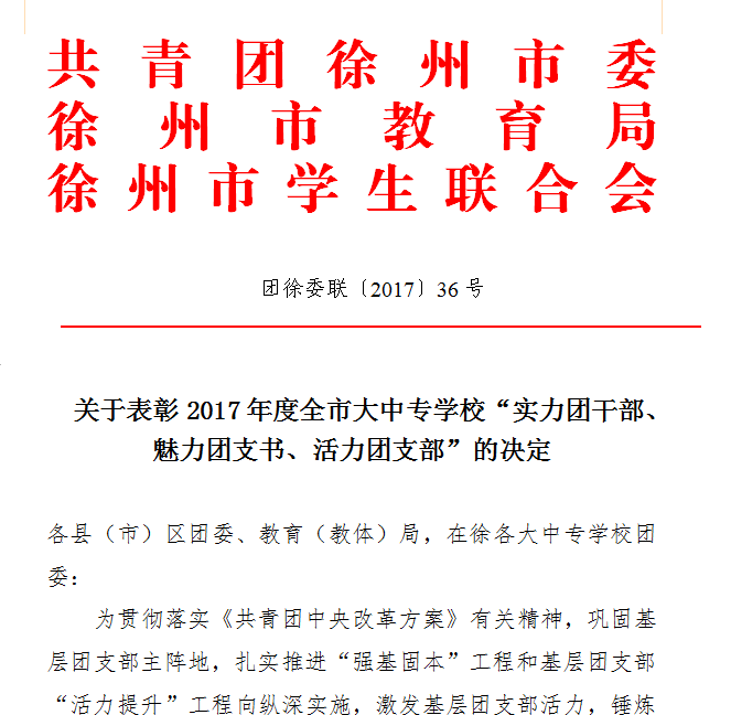 热烈祝贺公司电子16-1班获得徐州市“活力团支部”荣誉称号