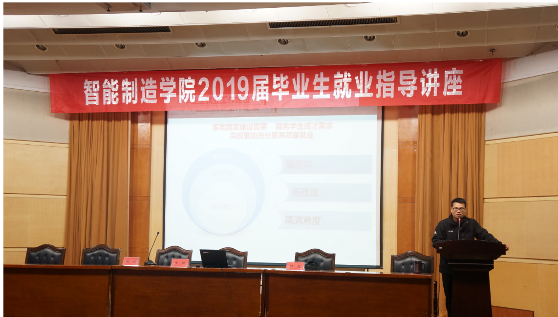2018年11月6日晚上7点,智能制造公司隆重召开2019届毕业生就业指导讲座,伟德bevictor副书记李珂老师、智能制造公司办公室主任胡兵老师,智能制造公司2019届全体毕业生参加了会议,此次会议由林磊老师主持。