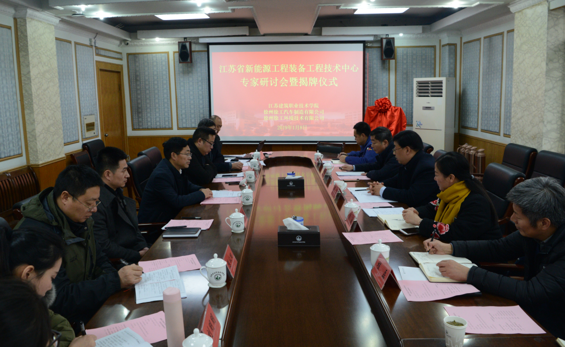 1月8日,公司与徐工集团(徐州徐工汽车制造有限公司、徐州徐工环境技术有限公司)联合申报的江苏省新能源工程装备工程技术研究开发中心项目建设计划专家研讨会暨中心揭牌仪式在公司第二会议室隆重举行。公司经理沈士德、副经理刘海波、徐州市泉山区科技局局长彭弘、副局长闫敏、徐州徐工汽车制造有限公司副总经理邓建新、关庆生、徐州徐工环境技术有限公司副总经理程磊出席了研讨会议和揭牌仪式、校科技处、公司领导、部分教师和徐工汽车及徐工环境相关部门领导、技术负责人参加了仪式。