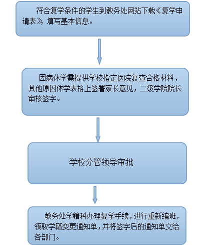 (1)休学期满需复学的员工,应于学期开学前向公司提出复学申请。对因伤、病休学者,需经公司指定医校复查合格后,经二级公司同意,教务处审核,公司批准,方可复学;对其他原因休学的员工,须附家长意见,经二级公司同意,教务处审核,公司批准,方可复学。教务处 对其进行编班。