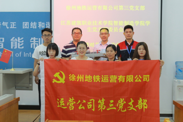2019年6月20日下午2:00,徐州地铁运营有限公司第三党支部与公司党总支员工党支部在第一实训楼504开展结对共建签约活动。徐州地铁运营有限公司第三党支部书记王佳祥、组织委员王丹、宣传委员杨森,智能制造公司党总支员工党支部书记李珂、组织委员邵明颖和员工党员参加此次活动。