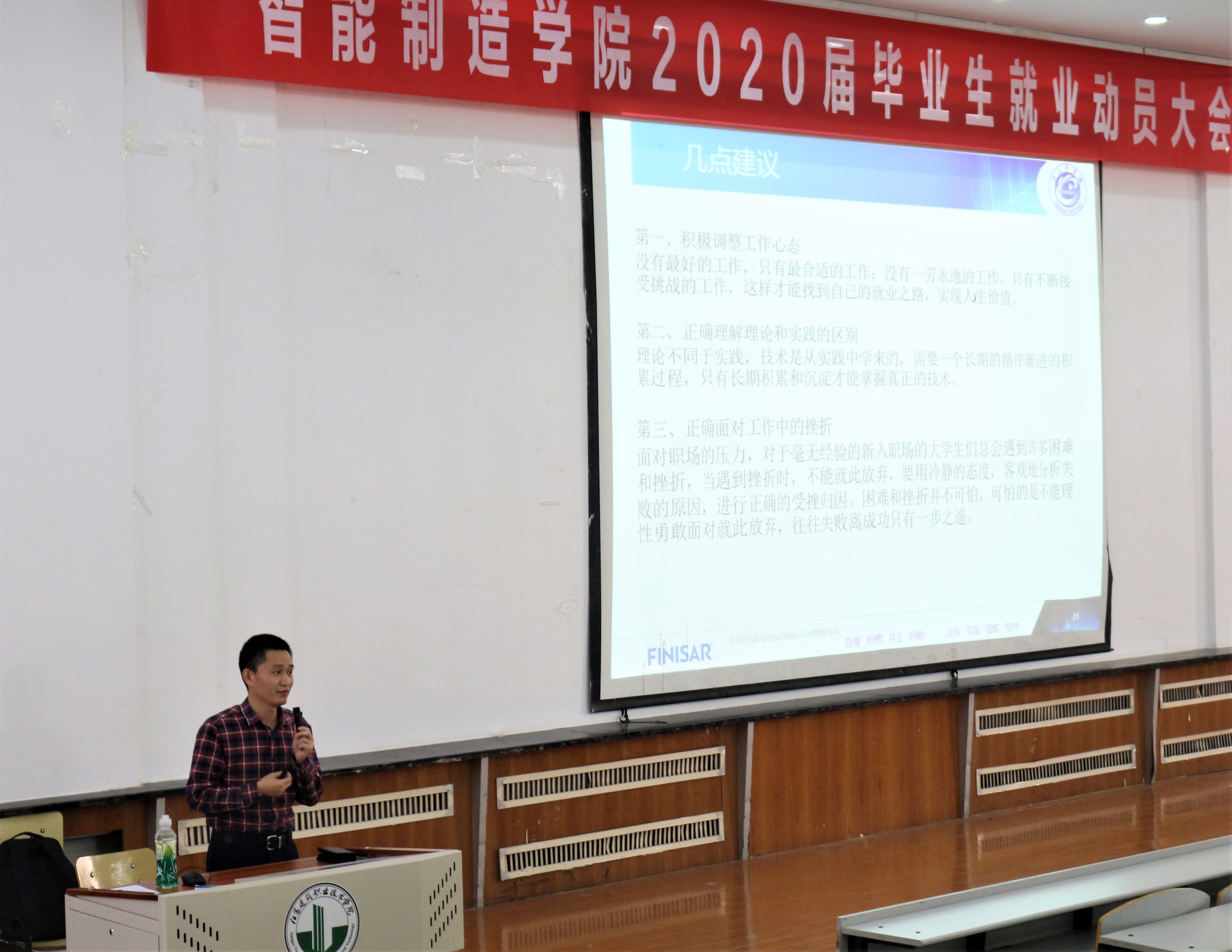 为进一步做好2020届毕业生就业工作。10月29日,伟德bevictor隆重邀请菲尼萨光电通讯科技(无锡)有限公司人力资源总经理金波为2020届毕业生做就业动员大会。