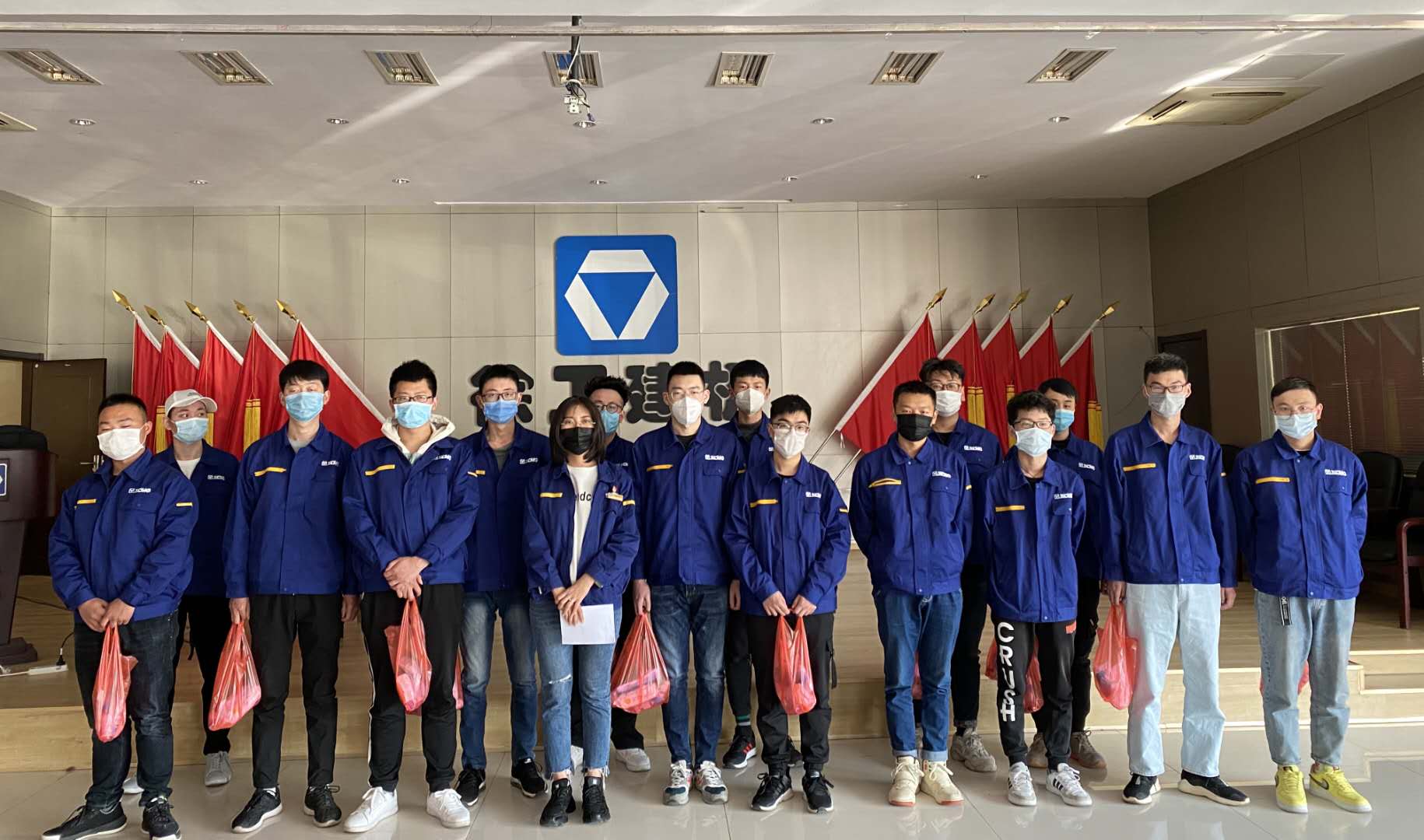刘洋等16名毕业生在徐工机械建设机械分公司进行顶岗实习,由于疫情原因,实习生无法返回公司居住,徐工建机的领导非常重视,组织专人在公司附近为员工们租赁两套房子,配备必须的生活用品,解决了员工们的燃眉之急。实习生返岗当天,单位认真组织安全防疫培训,详细讲解病毒的传播过程及如何有效防疫的安全知识,为实习生们发放消毒酒精、免洗手液、一次性医用口罩、消毒湿巾等卫生防疫物品,后续每天都会发放医用口罩,为实习生迅速投入到复工复产工作提供了安全保障。