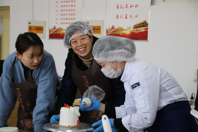 天时人事日相催,冬至阳生春又来.为了丰富教工的业余生活,在公司党政工领导的大力支持下,12月22日下午,妇委会请来徐州市红跑车蛋糕店的师傅为公司女教工举行了一堂蛋糕裱花现场教学课.在师傅们的认真指导下,每一位老师都成为勤学好问的员工,不仅在短时间掌握了裱花的基本技法,更多的是将自己的想法融入到自己的作品中,享受着奶香带来的快乐,参加活动的还有伟德bevictor部分女生,师生一起协力合作展示了自己动手劳动的快乐体验。