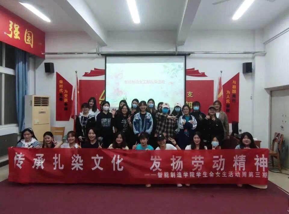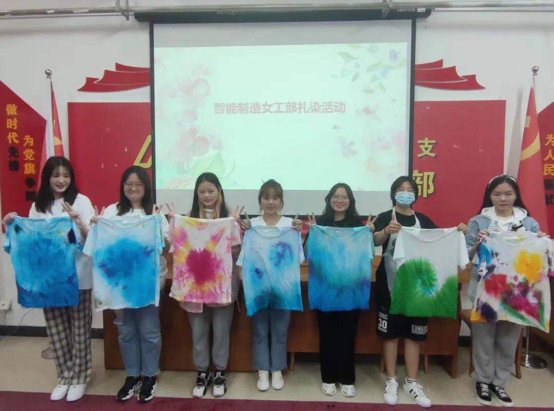 伟德bevictor员工会女工部举行的“巧手扎染”活动,于20021年4月29日星期四在第一实训楼1103举行。参与人员有辅导员汪满莎老师、伟德bevictor女工部以及伟德bevictor大一的女生们。