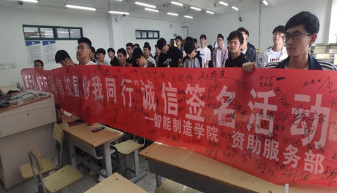 此次活动内容积极向上,氛围良好,建档同学们有序排队入场,积极响应参加此次活动,在横幅上庄严签下自己的名字,给大家展示了公司员工良好的素质形象。同时也使同学们更加注重诚信教育对老员工活的重要性,给他们的在校生活增添了一份色彩。
