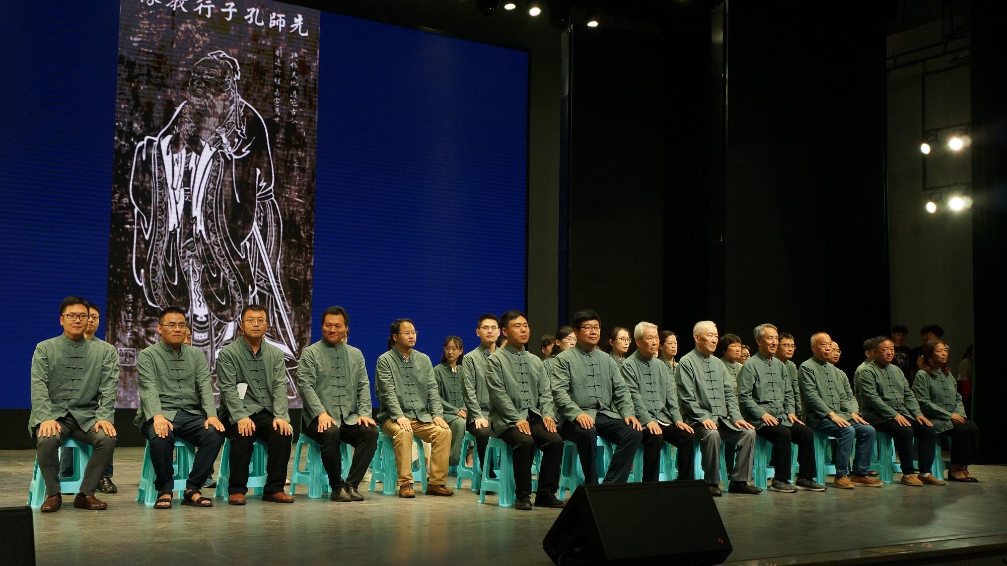 师生先向万世师表,大成至圣先师孔子行礼。大家面向先师像,鼓起后正衣冠、拱手、拜、兴、再拜、兴,师长转身,员工落座。