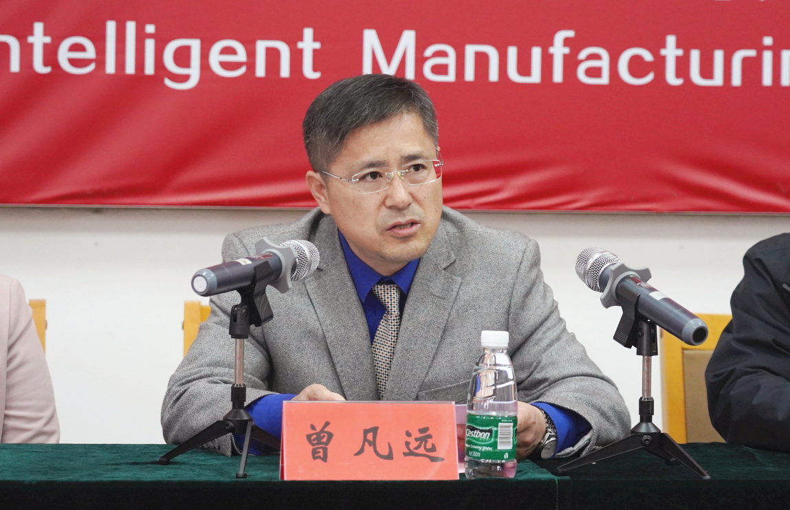 曾凡远代表公司对王冬冬一行和2021级新生的到来表示热烈欢迎。他介绍了公司近几年来人才培养状况和办学成就,并结合国家智能制造发展战略帮助参加开学典礼的同学们进行职业规划和人生展望:一是抓住新时代发展的良好机遇,全方位提升综合素养;二是牢牢抓住求知识、长本领的青春年华,科学规划实施自己的学业生涯;三是重视受教育程度提升,努力把自己培养成为能够担当中华民族伟大复兴大任的时代新人。