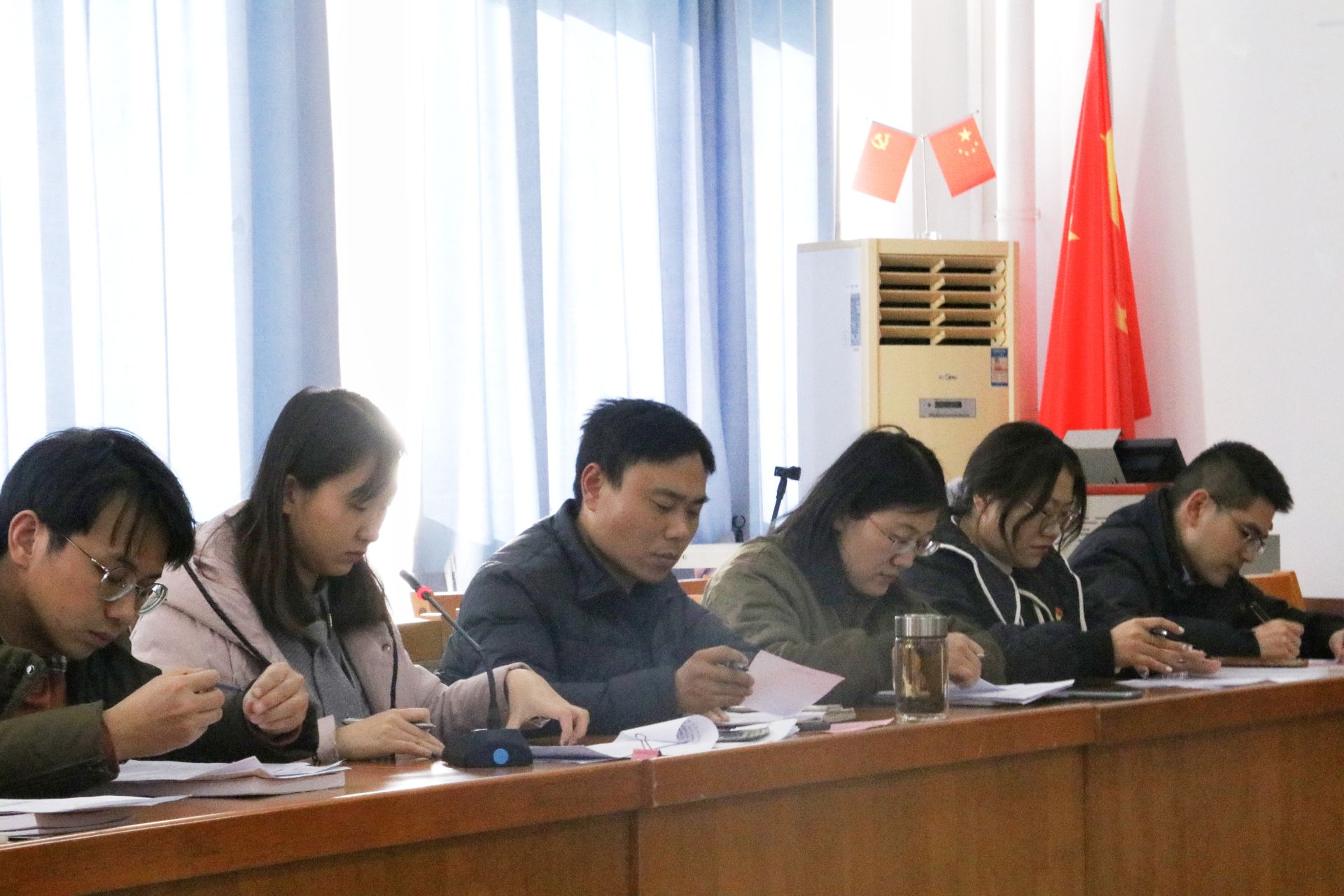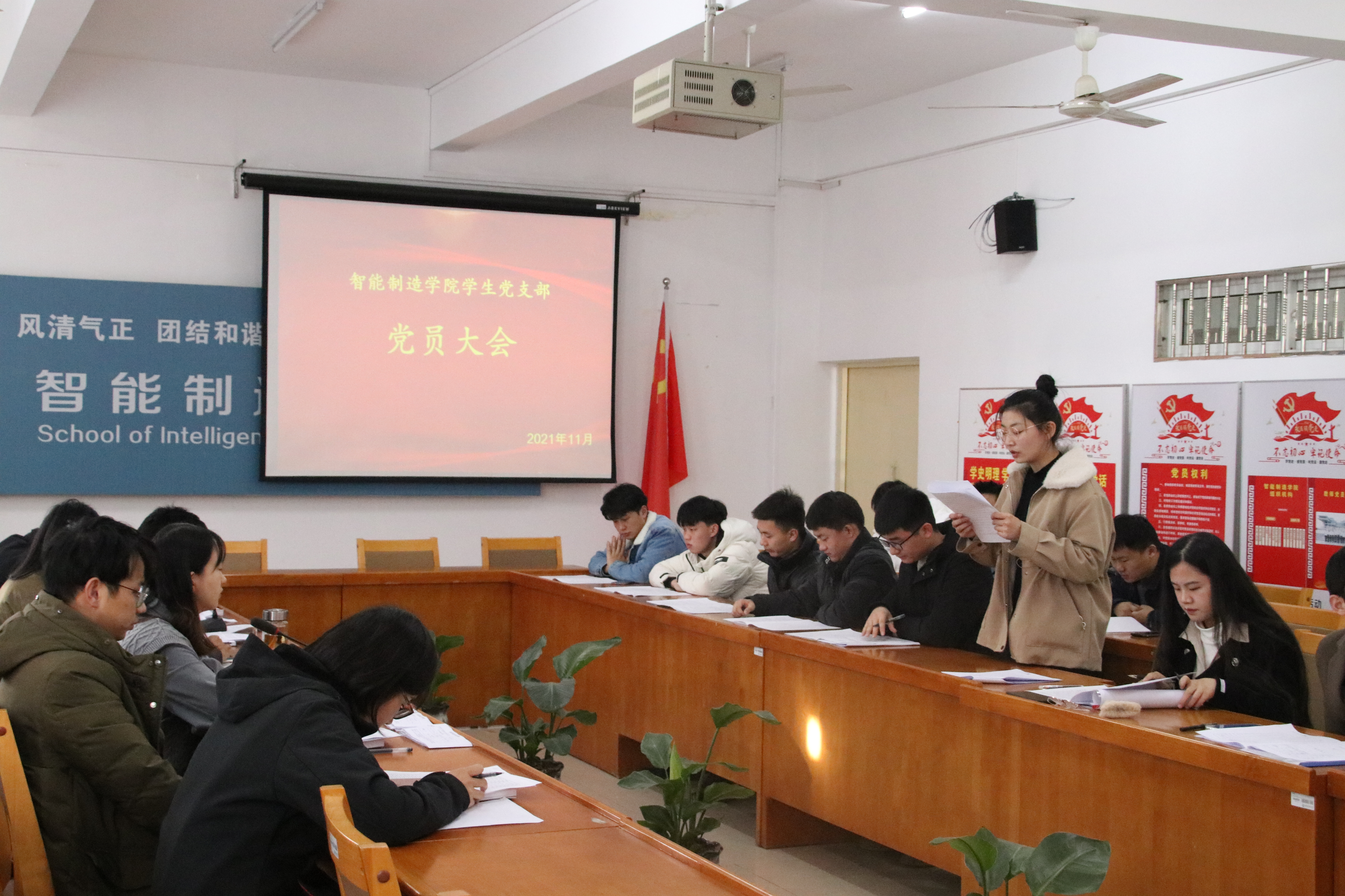 本次大会上王凤清书记指出:要用实际行动展现新时期的党员风采,第一,必须树立坚定的理想信念;第二,必须加强政治理论学习;第三,共产党员要始终保持党员的先进性;第四,共产党员要始终坚持全心全意为人民服务;第五,共产党员要在各项工作中起模范作用。优秀共产党员要做到“五带头、五模范”,即带头学习提高,做学习的模范;带头争创佳绩,做工作的模范;带头服务群众,做服务的模范;带头遵纪守法,做遵章守纪的模范;带头弘扬正气,做清正廉洁的模范。此次大会应到会正式党员7人,出席会议7人,有表决权的正式党员实到会人数超过应到会人数的一半,符合党章决定。会议经过个人宣读志愿书、入党介绍人介绍个人情况、正式党员投票、宣读大会决议、本人表态等过程,段新润等14名员工全票通过顺利成为预备党员。