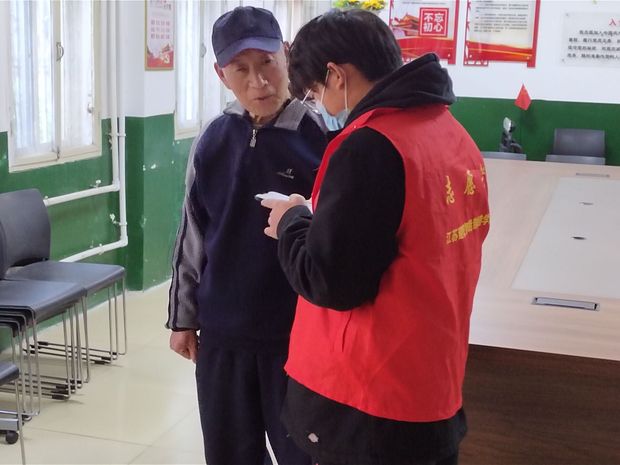 为协助社区防疫工作开展,防止“外输”,志愿者们开展“敲门行动”,自3月6日以来,挨家挨户进行敲门询问,对社区每一户人家是否有外市来徐的人员进行汇总,对单独在家的老人进行防疫宣传,告诉他们非必要不出门,出门要戴口罩,家里及时进行消毒,有什么困难可以联系社区或者志愿者进行帮助,志愿者共敲门近三百次,切实有效的帮助社区排除传染风险,保障社区人民安全。同时,公司青年志愿者协会为一些不方便出门的老人代拿了快递,买了鸡蛋,馒头等一些生活物资送过去,使他们减少被感染的风险,同退休离职老人一起聊天,给老人拍照,帮助老人给他们子女联系。在疫情期间,切实保障了离退休教职工精神文化生活、居家养老生活。使他们在疫情期间有充实的娱乐生活。