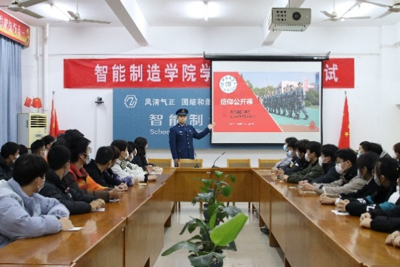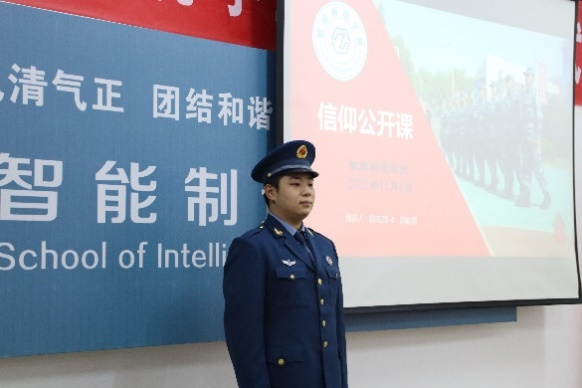 雄关漫道真如铁,而今迈步从头越。为引导青年牢固树立实现中华民族伟大复兴的中国梦,继承发扬革命军人的优良传统,展现当代军人老员工英姿风采,2022年11月6日下午,伟德bevictor在第一实训楼504召开“青春戎装,虽退伍,不褪色”信仰公开课。此次公开课由机电20-4班胡峻源同学主讲,50余名2022级新生参加。
