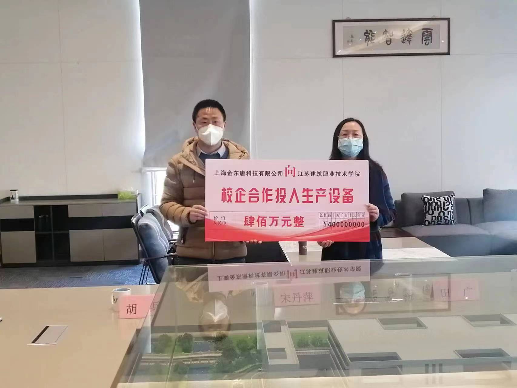2022年12月18日公司党委组织部(统战部)部长宋丹萍、招生与就业处处长田广、公司党总支书记王正扬、副书记胡兵一行四人走访了上海金东唐科技有限公司,并接受了上海金东唐科技有限公司向伟德体育校企合作投入的价值400万元生产设备。