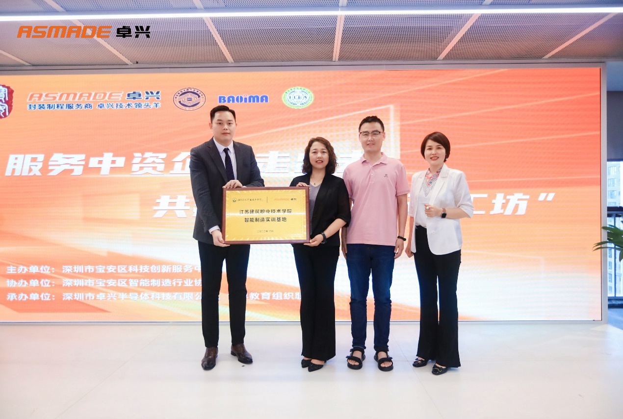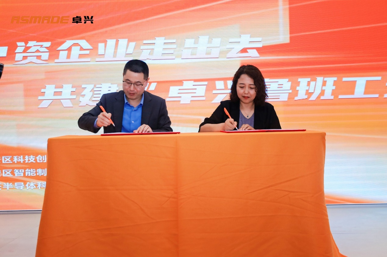 公司积极参与“卓兴鲁班工坊”创建工作,付红副经理代表公司与深圳市卓兴半导体科技有限公司签署了共建“卓兴鲁班工坊”的协议,未来深圳市卓兴半导体科技有限公司将作为公司智能制造实训基地,在超高清显示解决方案、功率器件封装固晶方案、先进封装固晶设备方案三大领域为公司专业发展助力。