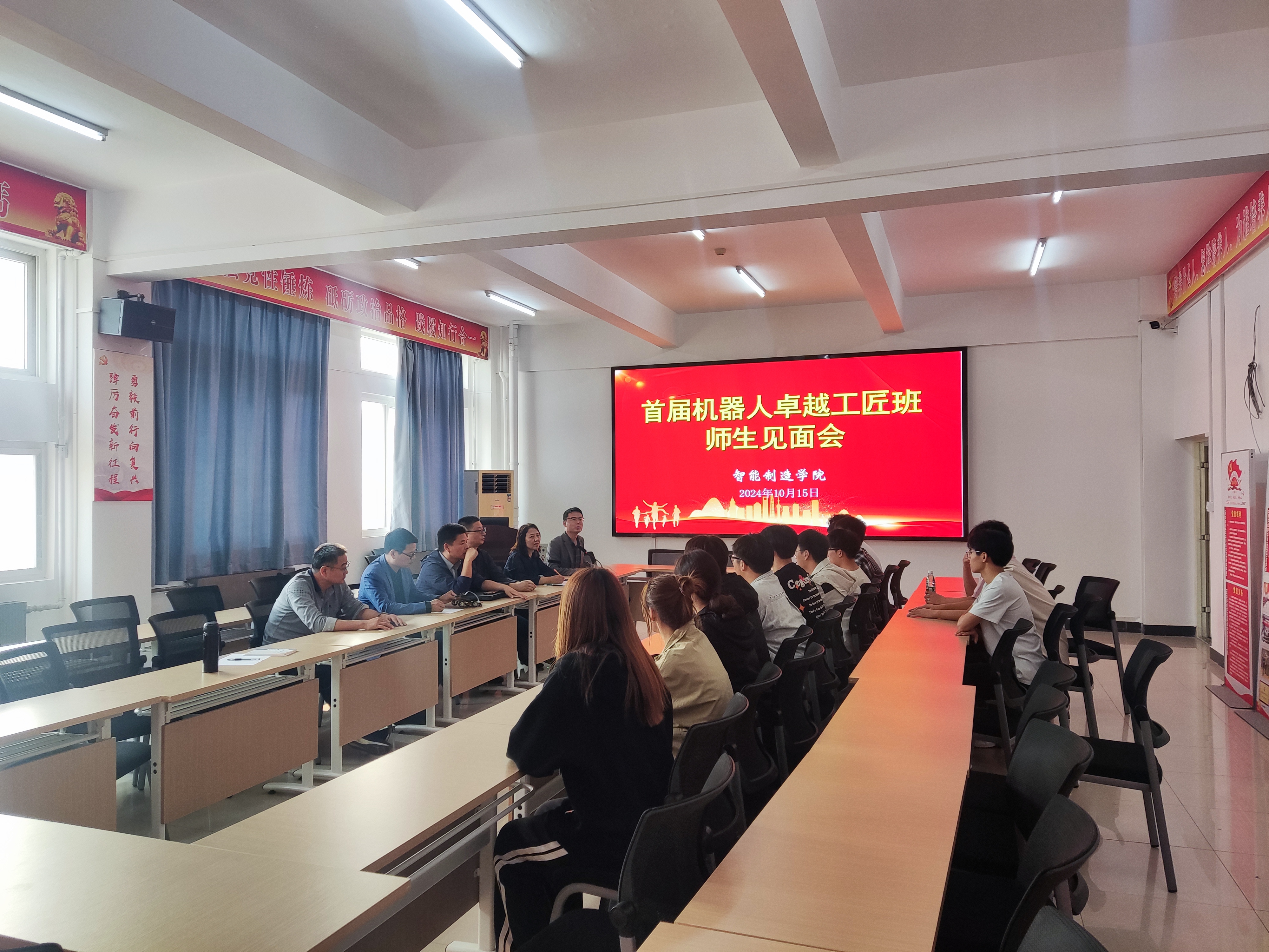 2024年10月15日,首届机器人专业卓越工匠班师生见面会在第一实训楼 504 会议室顺利举行。伟德bevictor副经理付红、副经理李雨潭、党总支副书记胡兵以及各科任课老师出席。