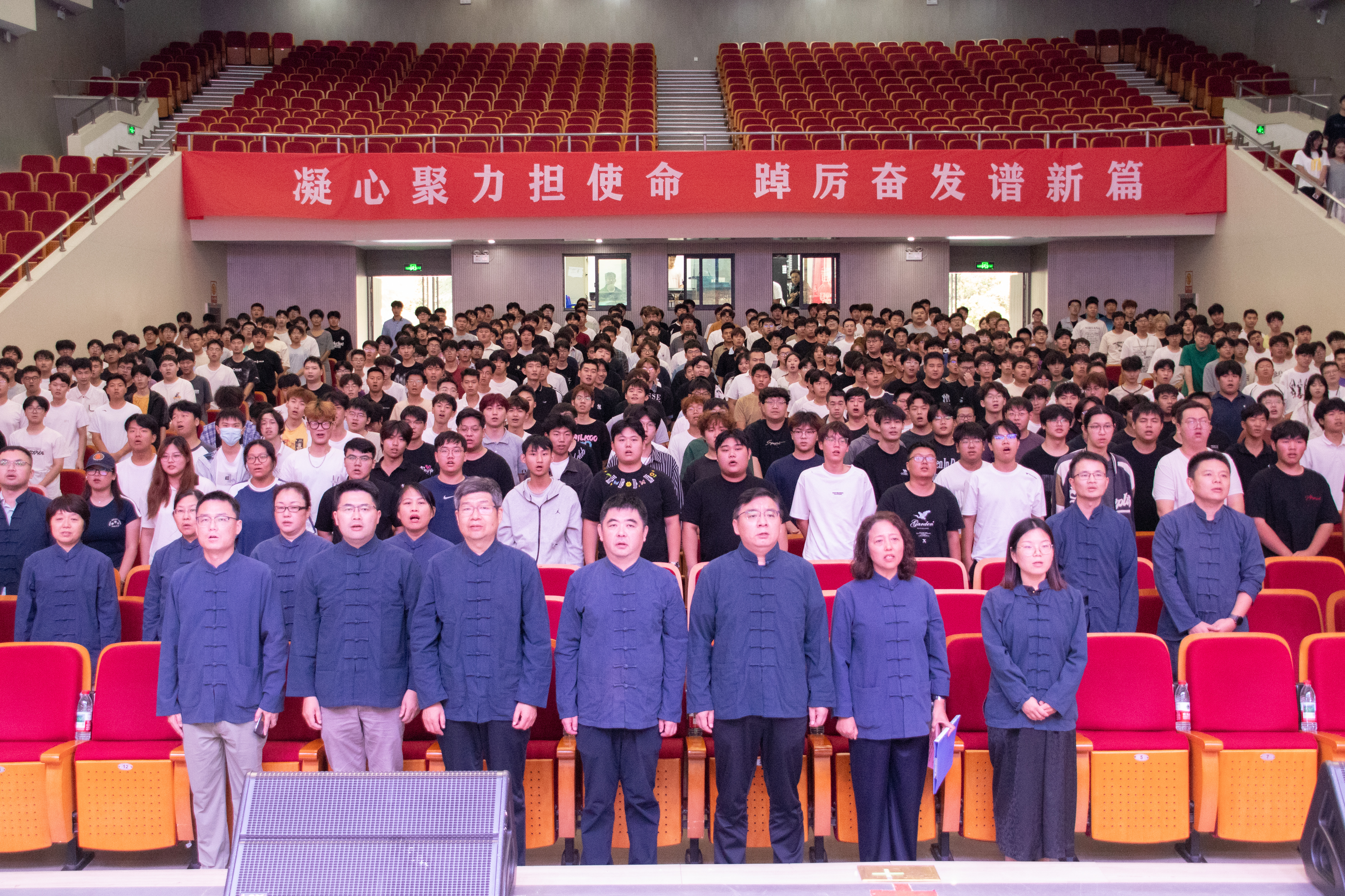 同时,典礼上开展了新生拜师仪式。533名新生在主持人韩冰雪的引导下,向全体老师行揖礼拜师。拜师之礼起源于至圣先师孔子,是中华传统文化中的璀璨瑰宝,承载着尊师重道、薪火相传的深厚内涵。它不仅是一种礼仪形式,更是道德的根基、敬意的表达、智慧的延续。公司持续开展新生开学拜师仪式,旨在引导青年学子常怀敬畏与感恩之心,在庄重仪式中体悟师道尊严,树立传承之志。该仪式不仅增进了师生间的深厚情谊,更在赓续传统中筑牢立德树人之根基,为学术之路照亮方向,为成才之梦铺平道路。
