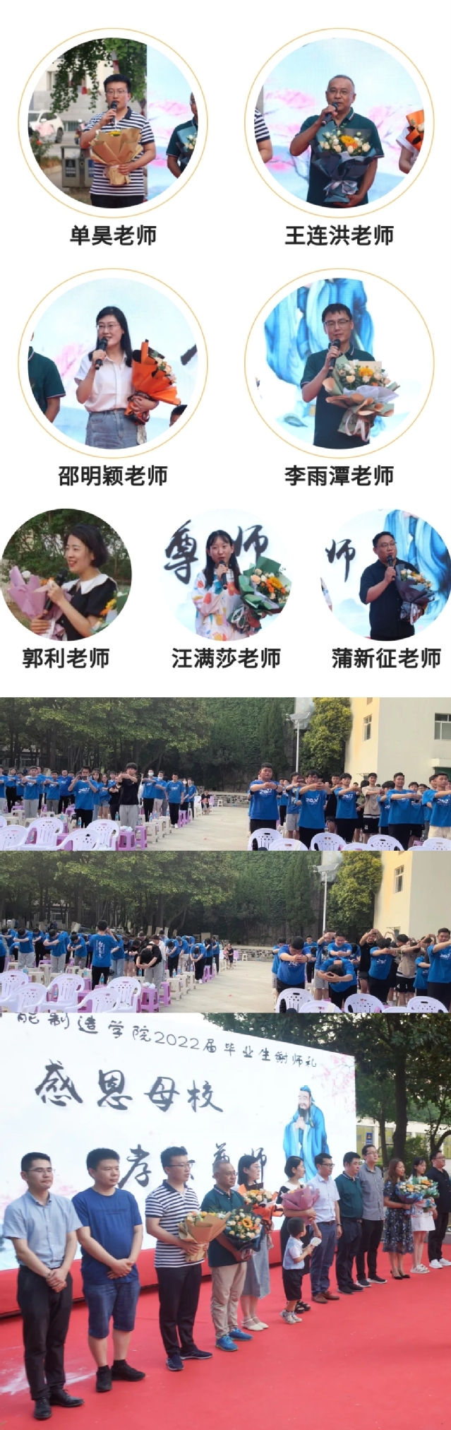 典礼还特别安排了“感恩母校、孝亲尊师”谢师环节,全体毕业班班主任带着笑和泪水为在场的毕业生送上最真挚的祝福,老师们的谆谆教诲变成了临行前最珍贵的礼物。随着主持人的一声“全体肃立”,谢师开始:“一拜师道尊严,立人立德。二拜传道授业,教化解惑。三拜感念师恩,天地为鉴。这行礼间,不仅表达出员工对母校、对老师的感恩与不舍之情,更是显现出公司长期致力于优秀传统文化与现代职教体系有机融合的良好成效